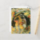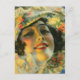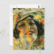 Esta postal cuenta con un hermoso chica con labios rojos rubíes y un magnífico gorra florido. A todos los que les gusta este estilo vintage les encantaría recibir esta postal.