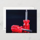 Los destornilladores rojos brillantes están en el centro de esta impresión, y están contrastados por un fondo negro. Ideal para alguien que trabaja con herramientas regularmente, es práctico o simplemente le gusta una huella industrial. ¡Añade un texto gracioso si lo prefieres!