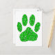 Una huella de un perro cubierta de hojas verdes. Imagen original.