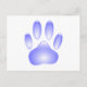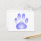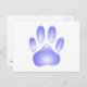Una brillante y transparente huella de una pata de perro hecha de vidrio. Postales personalizados. Toda la imagen digital que reproduce la textura del vidrio.