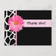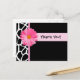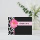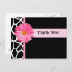 Dales las gracias con esta moderna tarjeta postal rosa y negra con una tira de jirafa en blanco y negro y una flor de margarita rosa.
