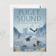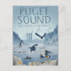 Disfruta de este ilustracion al estilo poster de viajes de icónicas vistas de la PNW - incluyendo el puente de Tacoma Narrows, el monte Rainier, y varios amados animales como Orca, Otters, Herons, Kingfisher, el águila calva, el pez estrella morado, focas, cangrejos y anémona. ¡Nos encanta aquí en el gran exterior!