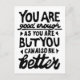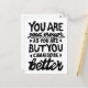 Impresión en lino blanco y negro de una cita motivacional que dice "Eres suficientemente bueno, pero siempre puedes ser mejor". Brinda un estímulo para que la gente sepa que la autoaceptación y el crecimiento van de la mano.