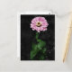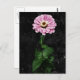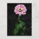 Fotografía de una zinnia rosa, con una flor pétalo doble rosa y estrellas amarillas, en un jardín.