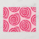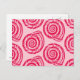 Postcard en forma de bloque impreso, basado en una concha espiral, en rosa fucsia profundo sobre un fondo rosa coral pastel