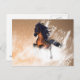 Impresionante caballo corriendo con un hombre azul y una nube de polvo