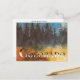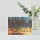 La representación de un bosque por un artista en un brillante día de otoño es el fondo de esta postal. En la parte inferior está el texto estilizado de Colorado, con cada letra con una silueta forestal dentro. Único, y tan bonito como los bosques y montañas de Colorado!