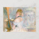 Las mejores pinturas de la historia, restauradas digitalmente, iluminadas y coloreadas para hoy por Artful Living! Los acentos dorados en la parte posterior realzan el aspecto artístico de esta postal morisca. La pintura al óleo de 1875 Woman en su Toilette de Berthe Morisot muestra un sensible vistazo a las rutinas diarias de una mujer, pintada en delicados tonos pálidos, arreglando su pelo en el espejo de su tocador. Berthe Marie Pauline Morisot (Francés, 14 de enero de 1841 - 2 de marzo de 1895) fue pintora y miembro del círculo de pintores en París que se hizo conocido como los impresionistas. Fue descrita por Gustave Geffroy en 1894 como una de las "grandes presas de les trois" del impresionismo.