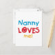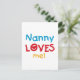 La nana me ama camisetas, tarjetas, pegatinas, bolsas de pantalones y más con un colorido diseño de corazón y texto rojo, amarillo y azul. ¡Esta nana me ama ropa y artículos de regalo hará sonreír a la nana!