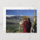 Postal India, Ladakh, Thikse. Monje budista sopla