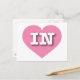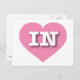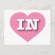 Esta postal tiene un vibrante corazón rosado que contiene las letras negrita, blanca y alta del funda IN, la abreviatura oficial de Indiana, el estado más honesto. El reverso de la postal está en blanco, esperando el texto personalizado o los sentimientos manuscritos.