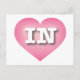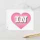 Este producto presenta un corazón rosa calmado, fresco y recogido, con un centro blanco lavado que contiene las letras en negrita y en funda superior IN, la abreviatura oficial del estado de Indiana.