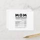Muestra amor y risa con este divertido y emotivo diseño de "Datos Nutricionales de Mamá" - el regalo perfecto para cada madre increíble. Estilizado como una etiqueta nutricional, este ingenioso y adorable diseño enumera todos los "ingredientes" esenciales que hacen que las mamás sean tan especiales: 100% Amor, Paciencia, Sacrificio, Fuerza y Cafeína. Ya sea para el Día de la Madre, su cumpleaños o simplemente para recordarle cuánto se aprecia, este diseño combina perfectamente el humor y el afecto.