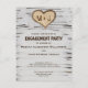 Iniciales del corazón del árbol de birch invitan a postales de fiesta de compromiso boda rústico con un corazón tallado en la corteza con sus iniciales. Es perfecto para su fiesta de compromiso con bodas de granero rústico al aire libre. Los colores son marrón, marrón oscuro, blanco roto, tostado y negro. Puedes personalizar las palabras a lo que necesites. También puede reemplazar o personalizar las imágenes. Consulte la colección coincidente de esta página para ver otros elementos coincidentes para su evento especial.