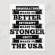 El muro y la prohibición de viajar a la inmigración va en contra de los derechos humanos y contra los valores que construyeron los EE.UU. Este diseño ayuda a expresar un fuerte sentimiento a favor de la inmigración. La inmigración nos hace más fuertes, la diversidad nos hace mejores, la unidad nos hace Estados Unidos.
