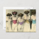 Una graciosa fotografía vintage de varias jóvenes paradas en una fila con flores, corsés y camisole. Cada uno de ellos está sosteniendo la parte superior de sus campamentos como si inspeccionara lo que hay debajo
