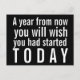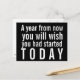 Postal motivacional - Dentro de un año desearías haber empezado hoy. Nuestra postal negra presenta tipografía blanca audaz y contemporánea y es un gran recordatorio para todo aquel que necesite un poco de inspiración. Inspira a tus amigos, familia, compañeros de trabajo y guarda los extras para ti mismo. Diseñado por Donna Gotlib para GotDonna. Gracias por pasarte.