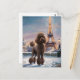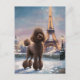 Esta deliciosa postal cuenta con un hermoso cuadro de un caniche marrón que disfruta de un día de invierno en París, con la icónica Torre Eiffel al fondo. Las obras de arte capturan el encanto del caniche en medio de un paisaje parisino nevado, evocando la elegancia y el romanticismo de la ciudad durante el invierno. Perfecto para enviar notas reflexivas o como pieza coleccionable, esta postal reúne el capricho de un querido mascota con la belleza intemporal de París. Ideal para los amantes del perro, los aficionados al arte y todo aquel que aprecie las escenas de inspiración francesa.