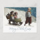 Esta vintage tarjeta de Navidad se basa en una antigua fotografía de estudio, que captura a dos niños sentados en un trinquete, mientras un niño mayor tira el trineo. ¡Es el momento de los Navidades, y la nieve está por todas partes! La fotografía de época es de 1912 — ¡100 años! Estos niños antiguos capturan la maravilla de los Navidades, un tiempo en el que no había televisión ni videojuegos — y salir al frío y jugar en la nieve era una verdadera emoción! Esta imagen es de una postal antigua. ¡Los niños que juegan en la nieve son la imagen perfecta de los Navidades para unas vacaciones maravillosas! La imagen dice: "Feliz Navidad". La vintage tarjeta navideña tiene un trineo anticuado, un montón de golosinas en la parte trasera, y dos niñas sentadas en la parte superior del bonito. Todos los niños tienen ropa vintage maravillosa. Está nevando bastante fuerte en el fondo, y parece que los niños acaban de deslizarse por la pequeña colina.