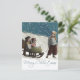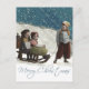 Esta vintage tarjeta de Navidad se basa en una antigua fotografía de estudio, que captura a dos niños sentados en un trinquete, mientras un niño mayor tira el trineo. ¡Es el momento de los Navidades, y la nieve está por todas partes! La fotografía de época es de 1912 — ¡100 años! Estos niños antiguos capturan la maravilla de los Navidades, un tiempo en el que no había televisión ni videojuegos — y salir al frío y jugar en la nieve era una verdadera emoción! Esta imagen es de una postal antigua. ¡Los niños que juegan en la nieve son la imagen perfecta de los Navidades para unas vacaciones maravillosas! La imagen dice: "Feliz Navidad". La vintage tarjeta navideña tiene un trineo anticuado, un montón de golosinas en la parte trasera, y dos niñas sentadas en la parte superior del bonito. Todos los niños tienen ropa vintage maravillosa. Está nevando bastante fuerte en el fondo, y parece que los niños acaban de deslizarse por la pequeña colina.