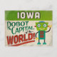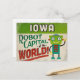 Una divertida postal de viaje vintage de Iowa con un simpático robot con divertido texto de estilo retro que dice: "¡Iowa, capital robótica del mundo!"