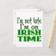 Este gracioso refrán irlandés dice que no llego tarde, estoy en Irish Time, con cartas celtas de nudos. Haga clic en Personalizar para agregar su nombre o mensaje de personalizado.