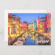 Esta hermosa postal contiene una foto de las hermosas casas de colores de la isla de Burano, Italia. Burano es una pequeña y pintoresca isla al noreste de la isla de Venecia, Italia. Por favor, siéntase libre de ajustar las opciones disponibles como desee.