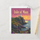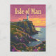 Una encantadora y nostálgica representación de la Isla de Man, situada en el Mar de Irlanda entre Gran Bretaña e Irlanda. El diseño destaca la accidentada costa de la isla, sus verdes colinas y sus monumentos históricos, como el Castillo Peel y la Rueda Laxey. La obra de arte, de estilo vintage, capta el encanto atemporal y la belleza natural de la Isla de Man, invitando a los espectadores a explorar su rico patrimonio y paisajes pintorescos.