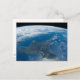 2 de enero de 2022 - Vista desde el espacio de la Isla del Norte de Nueva Zelanda que separa el Mar de Tasmania del Océano Pacífico Sur. Al otro lado del estrecho de Cook, South Island asoma a la sombra de la nube. Siete bahías rodean la Isla del Norte y definen su forma distintiva. El paisaje interior incluye pastizales (áreas verdes más livianas), bosques (áreas verdes más oscuras), mesetas volcánicas y cordilleras formadas de rocas sedimentarias. En el centro de la isla, el lago Taupo, un lago de cráter dentro de una caldera formada por una erupción supervolcánica, bordea el pico más alto de la isla, el volcán activo Monte Ruapehu. La naturaleza volcánica de la isla se debe a su ubicación en el límite tectónico entre las Placas indoaustraliana y del Pacífico. Este límite de placa forma parte de la vasta Anillo de Fuego del Pacífico, y conduce a una actividad geotérmica significativa y a terremotos en la región. Volcanes adicionales, como el Monte Taranaki (Volcán Egmont), también se extienden al paisaje de la Isla del Norte.