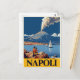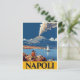 A breathtaking vintage-style travel poster capturing the iconic beauty of Napoli (Naples), Italy. The design dramatically features the smoking Mount Vesuvius towering over the colorful city skyline and the beautiful Bay of Naples. In the foreground, a couple relaxes by the water, adding a romantic touch to the scene. Perfect for lovers of Italian scenery, collectors of retro illustration, and anyone dreaming of the Amalfi Coast and Southern Italy.