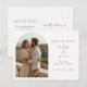 Esta elegante y chic tarjeta postal de guardar la fecha de la boda cuenta con una encantadora foto de pareja de arco boho y un conjunto contemporáneo de fuentes de lavanda, sobre un suave fondo marfil. Variaciones de este diseño están disponibles en la colección completa. La elección perfecta para una boda de jardín de primavera verano.