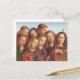 Postcard inspirado en el hermoso retablo de Gante, creado por el artista flamenco Jan van Eyck (alrededor de 1390-1441) y su hermano Hubert. La imagen muestra el detalle del coro ángel, con especial atención a las caras muy expresivas de los ocho cantantes. Ha habido mucho debate sobre las caras expresivas de los ángeles. Algunos académicos piensan que simplemente muestran el tono de la música, otros sugieren que la imitación puede tener un significado más profundo, que puede reflejar emociones humanas ante los principales atributos del Señor: alegría en presencia de grandeza: esperanza en presencia de generosidad; amor devoto en presencia de misericordia; miedo en presencia de justicia; dolor, tristeza y arrepentimiento en presencia de misericordia.