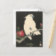 NewParkLane - postal del Bello Artes, con un vintage, impresión del japonés del comienzo del siglo XX con un cockatoo blanco en una rama de un árbol de granada; contra un fondo negro.