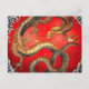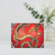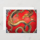 Postal japonesa del dragón del oro de Hokusai. Ukiyo-e produjo durante el período de Edo. Las criaturas mitológicas eran un tema frecuente del arte de Hokusai, este dragón del oro son uno de sus trabajos mitológicos más expresivos. El dragón se sienta en un fondo rojo rodeado con las ondas azules salvajes. Un gran regalo para las fans de Katsushika Hokusai, mitología japonesa, dragones japoneses, y arte japonés.