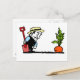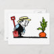 Perfecto para el jardinero en su vida. Dibujo vintage de un hombre hablando con una zanahoria enorme en su jardín.