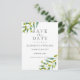 Esta elegante tarjeta de Save the Date presenta delicado follaje verde a la acuarela, enmarcando tus detalles personalizados para anunciar tu fecha especial. Diseñado por Thisisnotme©