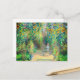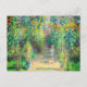 Postal con pintura al óleo de Claude Monet en el jardín del artista en Vétheuil (1880). Los girasoles y otras hermosas flores azules y rojas bordean un camino ajardinado donde los niños dan un agradable paseo. Un gran regalo para los aficionados al impresionismo y al arte francés.