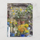 Un colorido jardín florido al lado de un barco estrecho amarrado en el canal Rochdale en el puente Hebden, West Yorkshire, Inglaterra