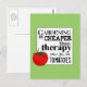 Este divertido diseño de jardinería tiene un tomate rojo brillante y alegre, y dice "La jardinería es más barata que la terapia y obtienes tomates". Personalmente creo que eso es un poquito optimista sobre la capacidad de la gente para cultivar tomates, pero tal vez tengas mejor suerte que yo. El diseño humorístico está disponible en una amplia gama de productos, y todos los colores de fondo son personalizables, solo tienes que hacer clic en 'personalizar'.