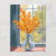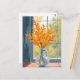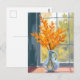 Tarjeta postal de acuarela de jarrón de flores de otoño en alféizar