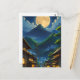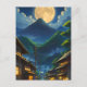 La luna brilla sobre un pequeño pueblo en Java, Indonesia, con una gran montaña al fondo.