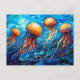 Postal Jellyfish in Swirling Underwater Oil Painting