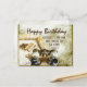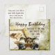 Tarjeta postal de cumpleaños personalizada Inspirational muestra una escena vintage de un marco de imagen y binóculos y presenta el versículo de la Biblia Jeremías 17:7, "Bendito el hombre que confía en el SEÑOR". La tarjeta se puede personalizar según los detalles de su elección.