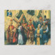 El diseño de ilustracion vintage con Jesucristo llevando la cruz forzado por los romanos en su camino a su crucifixión es un episodio incluido en los cuatro Evangelios, y un tema muy común en el arte, especialmente en las catorce Estaciones de la Cruz, cuyos conjuntos se encuentran ahora en casi todas las iglesias católicas. La ruta es la Via Dolorosa en Jerusalén.