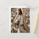 Este ilustracion bellamente detallado retrata a Jesús como el Buen Pastor, encarnando compasión y cuidado. Se le ve desde una perspectiva de tres cuartos, centralmente posicionado, usando una bata blanquecina. Sus rasgos de mediana edad, incluyendo el pelo marrón claro, una tez bronceada y una barba, irradian calor y humildad. Arañando un cordero en un brazo y sosteniendo al personal de un pastor en el otro, Jesús vigila cuidadosamente a una bandada de ovejas dispersas. El entorno pastoral es rico en verdes vibrantes, con colinas onduladas y un frondoso follaje que se extiende a lo lejos. Las ovejas de color marrón claro y la lana marrón se esparcen por todos lados, completando la escena pacífica. El cielo azul es suave, las nubes están dispersas y la luz difusa resalta el ambiente sereno. Esta obra de arte refleja pinturas religiosas tradicionales, destacando el color fuerte y los detalles intrincados. Capta el eterno tema de la fe, la protección y el inquebrantable amor de Jesús por Sus seguidores. Ideal para los que buscan un arte cristiano significativo, esta pieza sirve como un recordatorio visual de la comodidad y guía que se encuentra en Su cuidado. Su ambiente sereno lo convierte en una adición perfecta a cualquier espacio de culto o en un regalo para alguien que aprecia su fe.