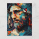Cette carte est ornée de l'image de Jésus Christ. Elle est représentée par des formes géométriques complejos et des couleurs vives, avec des fiestas du corps décomposées et représentées sous différents angles. Cela crée une impresión de mouvement et de profondeur, tout en ajoutant une touche artistique único.