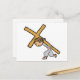 Jesús Cargando la cruz muestra un hombre pegajoso Jesús llevando la cruz de madera a la Crucifixión. Una divertida, humorística y respetuosa imagen cristiana para Pascua o en cualquier momento.