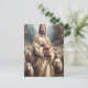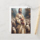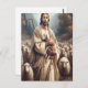 Esta sincera representación de Jesús como el Buen Pastor irradia paz y compasión. En el centro de la escena, Jesús aparece en una vista de tres cuartos, vestido con una bata blanquecina que corre. Su cabello marrón claro, su cutis bronceante y su barba reflejan su humilde naturaleza y calidez. Sujetando un cordero suavemente en Su brazo y llevando el personal de un pastor, Jesús guía a su rebaño con amor y cuidado. El entorno es tranquilo y cuenta con un exuberante paisaje pastoral de colinas verdes onduladas, un follaje vibrante y ovejas esparcidas en diferentes tonos de marrón claro y bronceado. Un cielo azul suave con nubes dispersas contribuye a la serenidad, complementada con una luz difusa que crea un ambiente agradable. Rica en colores y detalles, esta obra de arte se inspira en pinturas religiosas tradicionales. Transmite un mensaje atemporal de fe, protección y conexión de Jesús con Sus seguidores. Ya sea exhibida en un espacio de culto o obsequiada con alguien que busca inspiración espiritual, esta pieza sirve como un recordatorio visual del inquebrantable amor y guía del Pastor.
