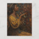 This postcard features a melanin-rich reimagining of Thomas Edwin Mostyn’s 1900s painting 'Jewels,' bringing new life to a romantic classic. Set against a dreamy rose-filled backdrop, the poised brown-skinned woman is draped in a flowing golden-yellow gown and adorned in turquoise jewelry, echoing Mostyn’s original composition, while celebrating modern representation and timeless elegance and luxury.