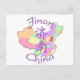 Jinan de la provincia de Shandong en un colorido mapa de China incluye los símbolos chinos para 'Jinan' y su ubicación está marcada en el mapa con un corazón y una bandera. ¡Un regalo único y divertido! Diseñado por Hendrika de RedThreadMaps.com